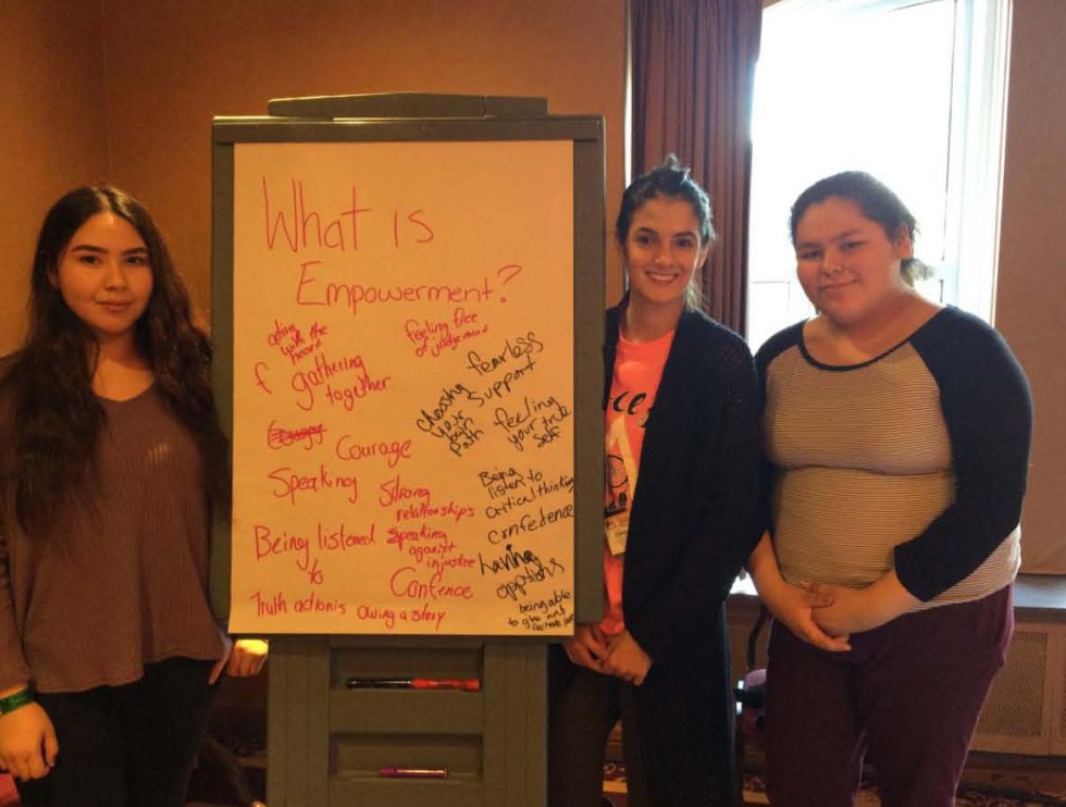 Traveling to attend the International Expressive Arts Therapy Associations (IEATA), Indigenous Roots of Expressive Arts Therapy: Transformation, Social Justice and Social Change, Globally and Locally conference in Winnipeg allowed us as a research team to travel and share our research experiences as well as learn about other ways art is used to create better communities. The research teamthat traveled was three youth, a chaperone, and myself (See photo below). The conference allowed the youth co-researchers in the project to share the skills they developed, enhance their facilitation and presentation skills and co-learn with other women on their definition of empowerment (See photo two below). The title of our workshop wasMamāhtāwicikewIskwēsis: A Plains Cree Description of Girl Empowerment. It was also a time for the girls to learn about the other ways in which art and culture are being implemented to transform and create social change within Canada and globally. After the closing of the conference, the girls travelled back to the community and shared the knowledge they gained with their peers.